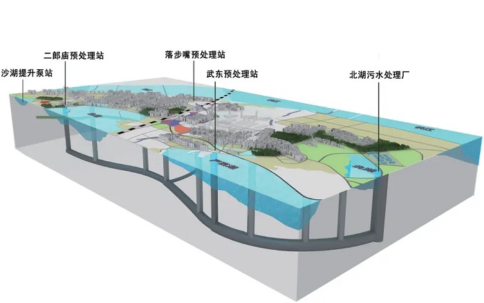 武漢大東湖深隧則展現了工程的規模效應。作為當前國內傳輸流量最大、輸送距離最長的污水深隧,其平均埋深超30米,最大限度減少了對淺層空間的影響。主隧全長17.5公里,覆蓋武昌、洪山、青山和東湖風景區四個行政區。該系統可將半個武昌的污水運送至主城區外的北湖污水處理廠,服務大武昌片區130平方公里內約300萬居民。自2020年9月運行以來,該工程累計輸水量已突破9億噸(相當于7.5個東湖水量)。這項工程創新采用“污水走隧道、地上建花園”的集約化模式,既保障污水收集處理,又節省了中心城區寶貴土地。運行方面,通過智慧運營系統、健康監測、無人機巡線及水下機器人等技術手段,實現了對深隧的智能化運維管理。這些技術手段有助于及時發現隱患、保障設施安全運行,為城市安全度汛提供重要支撐。