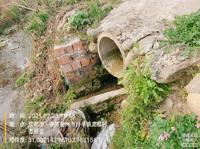 “以前村委會旁邊的排污口流出來的都是污水,流進河里把河水都污染了。” 67歲的羅德全家住成都市彭州市九尺鎮龍福村,他所說的排污口位于龍福村村委會東南200米的白土河左側,是一處城鎮雨洪排口,因水質異常被列為問題排口,排出的污水嚴重影響了附近村民的生活。