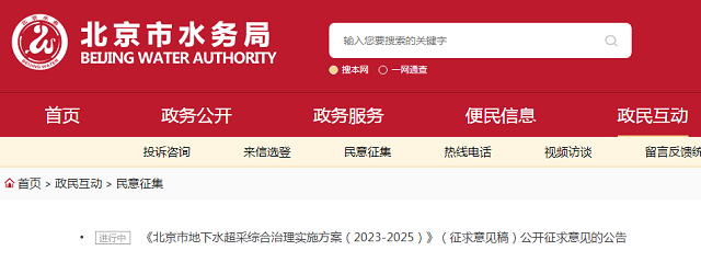 近日,記者從北京市水務(wù)局獲悉,《北京市地下水超采綜合治理實(shí)施方案(2023—2025)》(征求意見稿)(以下簡(jiǎn)稱《方案》)公開向社會(huì)征求意見。