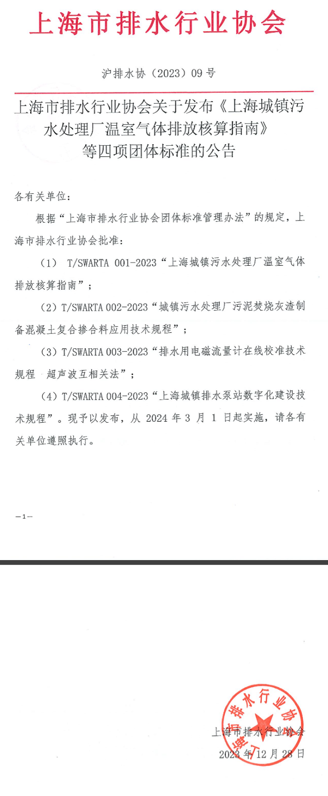 2023年12月28日,T/SWARTA004—2023《上海城鎮(zhèn)排水泵站數(shù)字化建設(shè)技術(shù)規(guī)程》團(tuán)體標(biāo)準(zhǔn)經(jīng)由上海市排水行業(yè)協(xié)會(huì)發(fā)布。文件起草單位為上海市城市排水有限公司,文件將于2024年3月1日起正式施行。