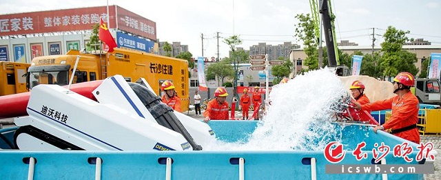 “這臺裝備是今年到位的,而且是妥妥的‘長沙造’。”市城區(qū)防澇排漬搶險隊相關(guān)負責(zé)人介紹,其搭載的迪沃履帶式排水機器人可實現(xiàn)無線遙控,工作半徑可達500米,可在狹窄空間、斜坡臺階、低矮地形等風(fēng)險區(qū)域開展救援作業(yè),而且操作人員無需涉水。