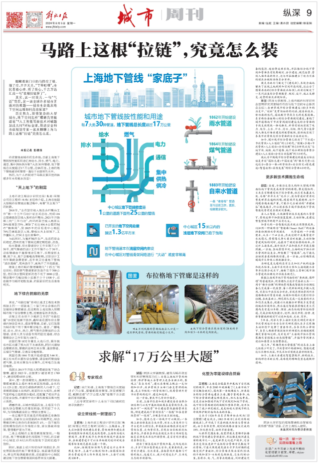 日前,《解放日報》記者訪談了上海市政總院總工程師(結(jié)構(gòu))王恒棟,就城市地下管線建設(shè)和管理方面作深入探討,文章刊發(fā)于8月5日出版的《解放日報》縱深專欄,原標題為《馬路上這根“拉鏈”,究竟怎么裝》。