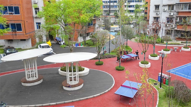 改造后,電力小區一躍成為群眾紛紛向往的“海綿小區”,龍翠華那些搬走的鄰居,又相繼搬回來了。低洼積水區變成栽滿各種綠植的雨水花園,破舊的道路、廣場變成五彩游步道,狹小、陰暗的角落變成80多個透水停車位,步行爬8樓變成電梯“一鍵”直上……