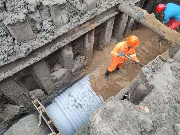 把原來這里的600~800的管子改成1000~1400管徑的管子接入后面的萬榮路口一個窨井以后,直接接入到江場北的雨水泵站,使我們的下閘道這一段的積水,得到明顯的改善。惠及到整個市北高新園區(qū)、大寧地區(qū),對這兩個南北片區(qū)通行能力有一個很大的提高。