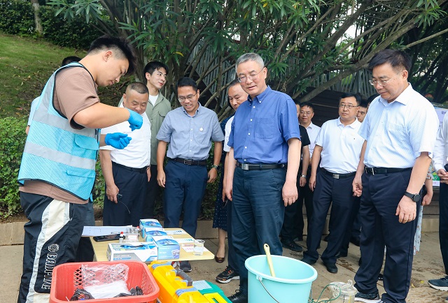 圖為2024年5月,民進中央調(diào)研組在江西省贛州市贛江邊現(xiàn)場采樣進行快速檢測。民進中央供圖