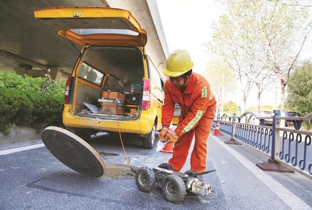 管道疏通工作結(jié)束后,一臺(tái)外觀酷似玩具汽車的CCTV檢測(cè)機(jī)器人被放入雨水管道,機(jī)器人沿管道爬行的同時(shí),管道內(nèi)部的實(shí)時(shí)高清畫(huà)面被傳輸?shù)揭慌缘谋O(jiān)視器上。技術(shù)人員對(duì)管道接口處有無(wú)裂縫,管內(nèi)淤積以及破損、滲漏、錯(cuò)位等結(jié)構(gòu)病害進(jìn)行排查判斷,制訂下一步的修復(fù)計(jì)劃。“我們已經(jīng)對(duì)全市500余公里的雨水管網(wǎng)進(jìn)行了清淤和檢測(cè),修復(fù)病害478處,修復(fù)管網(wǎng)長(zhǎng)度達(dá)1520米,”張哲夫說(shuō),“采用非開(kāi)挖修復(fù)的方式,減少了對(duì)市民出行的干擾,更是大大降低了維修成本,提升了地下管理的‘軟實(shí)力’。”