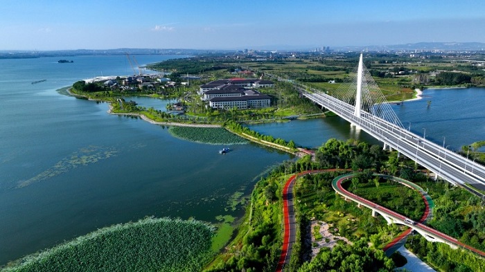 今年8月,山西省長治市漳澤湖國家城市濕地公園迎來一批特殊的游客——湖南衛視綜藝節目《假期中的她們》的十二位明星姐姐,她們在此舉行城市騎行大賽。沿湖騎行途中,十里風荷搖曳生姿,二十四橋與神農湖大橋相映成畫,姐姐們“好漂亮的風景”“這條路也好美”的贊嘆聲,不僅將漳澤湖的詩意景致呈現在全國觀眾眼前,更把長治市以水為媒的生態之變帶入大眾視野。