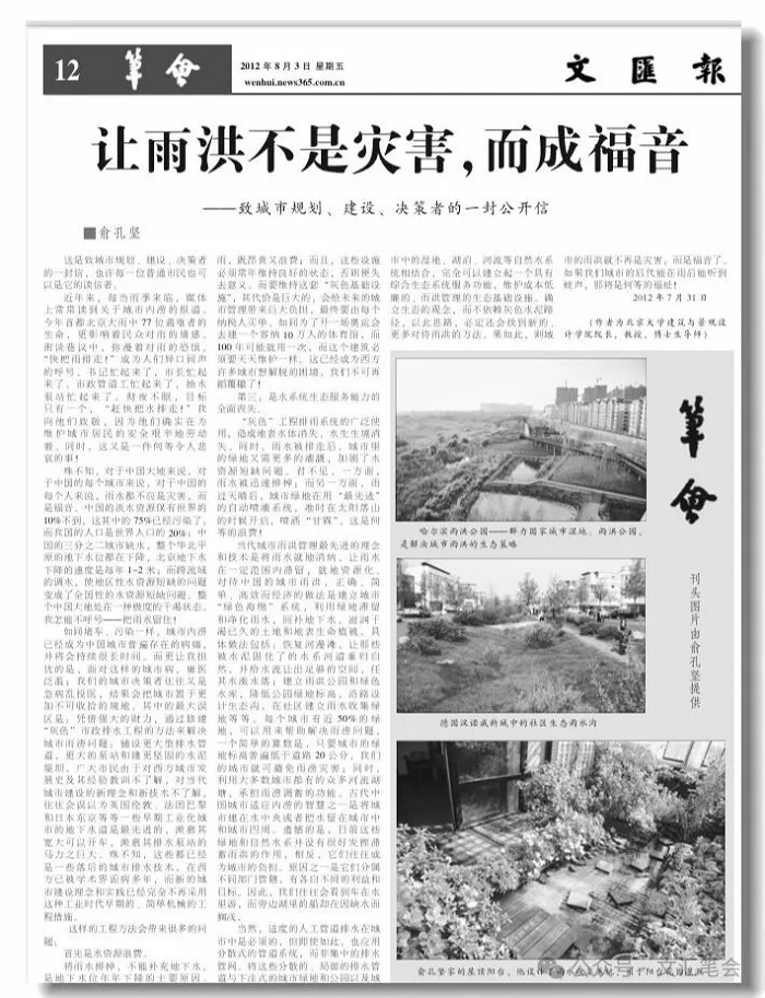 當前位置:首頁 > 國內行業 > 重溫俞孔堅13年前這封公開信:“我怎能不呼號?把雨水留住!”